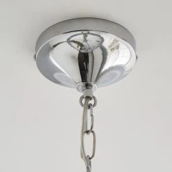 Add a glamorous touch to your décor with the Dorma Genevieve 5 Light Ceiling Fitting. Exquisitely designed with a modern chrome base, detailed with stunning clear crystals and faceted crystal droplets. This luxurious piece is complete with a circular Grey faux silk shade with a double taped trimmed detailed finish and suspended from a height adjustable chain set. Matching Dorma Genevieve pieces are available to help coordinate your décor.