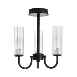 Add a contemporary touch to your décor with the Dorma Henstone 3 Light Ceiling Fitting. Exquisitely crafted with a modern semi-flush matt black painted base, detailed with three stunning matt black arms and clear ribbed real glass shades. This modern piece will look beautiful in any room and its IP44 rated so its suitable for bathrooms. Matching Dorma Henstone pieces are available to help coordinate your décor.