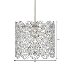 Featuring a geometric floral design with clear acrylic jewel details this elegant Arden pendant fitting is designed with a sleek chrome finish.