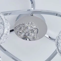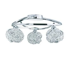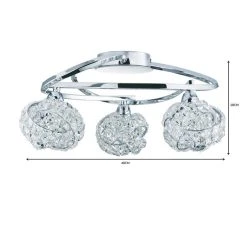Give your room an elegant touch with this stunning dimmable light fitting. Beautifully designed with a chrome plated finish, this semi-flush fitting features three lights with decorative crystal glass shade and curling arms, a perfect statement piece for any living space.