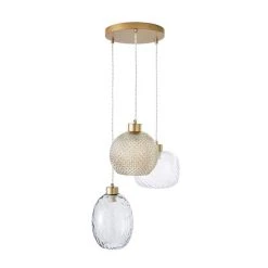 Featuring the Elodie 3 Light Cluster Ceiling Fitting , this stunning ceiling fitting with gold-painted details features 3 unique glass designs in coloured and clear shades. Each glass is suspended from a white twisted cable and can be varied in height. This beautiful ceiling fitting will complement an array of decors and matching family items are also available, making coordinating your home even easier.