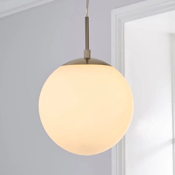 Add a stylish and modern touch to your home with this dimmable pendant light. Featuring a stunning satin nickel finish and an opal glass diffuser.