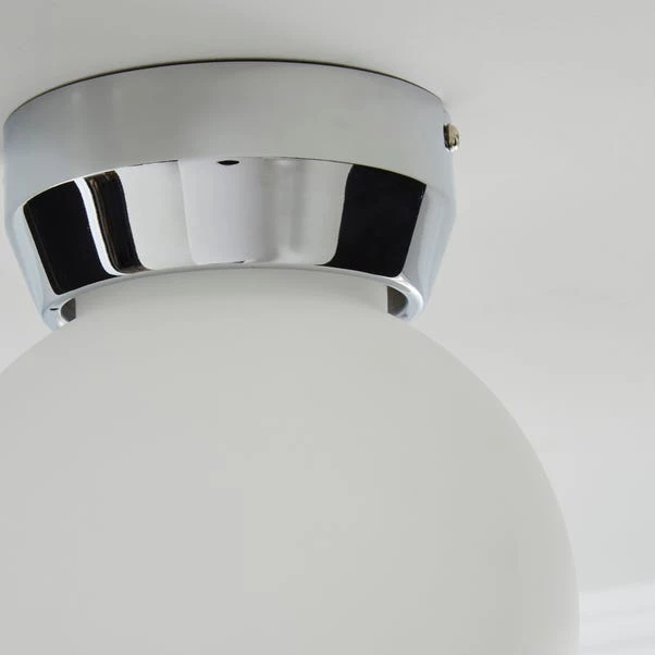 Featuring a single flush dimmable light with a stunning chrome finish and an Opal glass diffuser. Boasting a durable steel construction this is perfect for any room of the home.