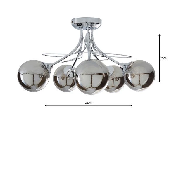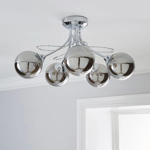 Dunelm Mateo 5 Light Glass Chrome Semi-Flush Ceiling Fitting