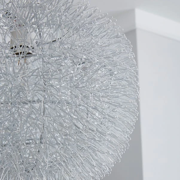 Crafted with a mesh like structure, this silver circular ceiling pendant shade will make a decorative statement in any room.