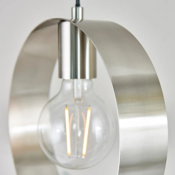 Available in a choice of luxe gold or trendy nickel colourways, the Circ pendant fitting is the perfect way to add some fun, modern styling to your home. This minimalist ceiling light features a fully height adjustable black flex and an open circular shade, making it perfect for pairing with a statement LED filament bulb to complete the modern aesthetic.