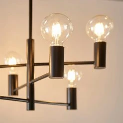 Get a designer look with the stylish Forsan 6 light ceiling fitting, finished in a smart matt black finish for a modern look. This minimalist chandelier is perfect when paired with LED filament bulbs for that essential, on-trend look.
