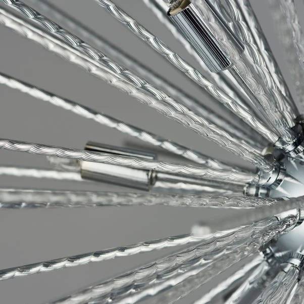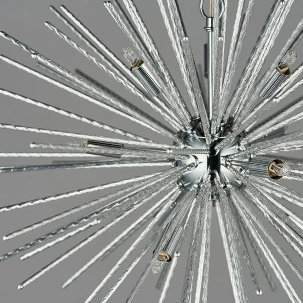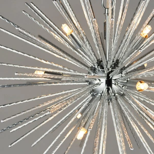 A modern version of a timeless classic from the past, the Winton Sputnik Chandelier is finished in polished chrome, featuring an ‘explosion’ of textured rods that create dramatic light patterns. Suspended from a height adjustable chain with clear flex, be brave and add this to modern or classic interiors.